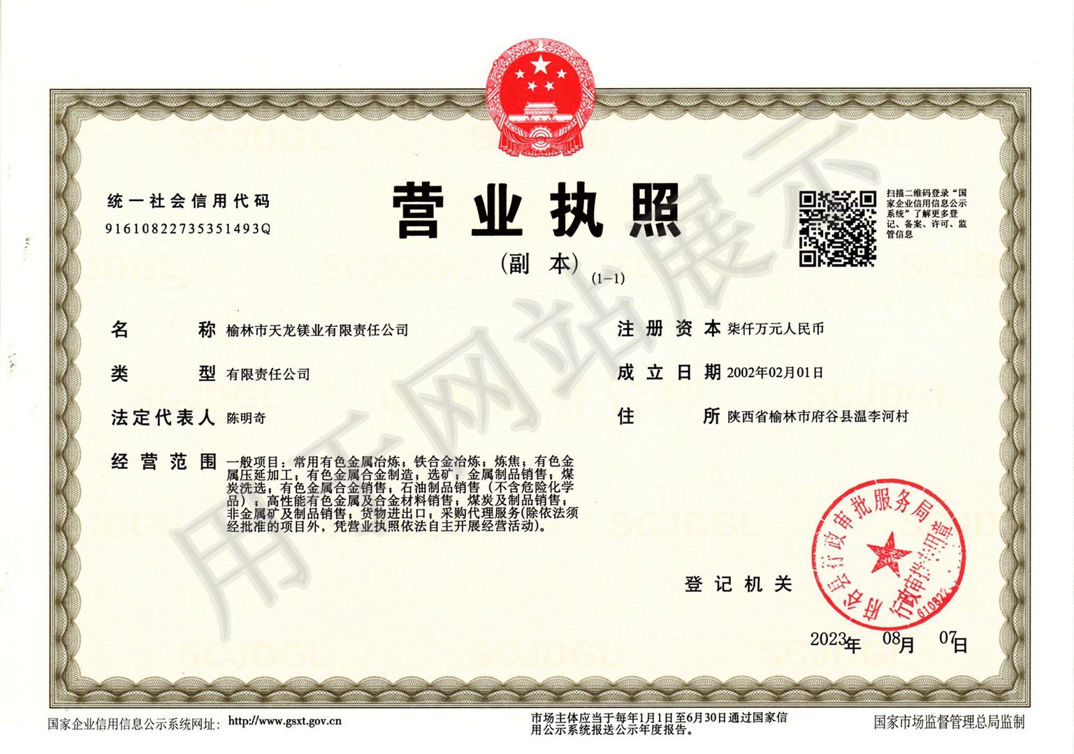榆林市天龍鎂業(yè)有限責(zé)任公司網(wǎng)站 公司地址:陜西省府谷縣溫李河工業(yè)園區(qū) 聯(lián)系人:楊立 (貿(mào)易部經(jīng)理) 電話:+86-0912-8808019 傳真:+86-0912- 8808019